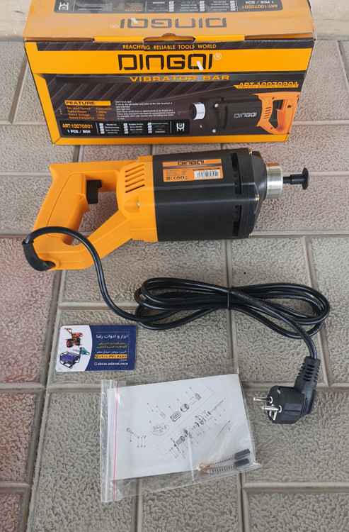 بهترین و با کیفیت ترین ویبره دریلی موجود در بازار ایران / ویبره دریلی صنعتی ۱۲۰۰ وات واقعی / برند با کیفیت دینگی/به همراه شیلنگ دو متری درجه یک / بدنه فلزی / گیربکس فلزی/ سیم پیچ تمام مسی/ کیفیت بی رقیب / مناسب مصارف صنعتی و سنگین / به همراه ذغال یدکی: جنس درجه یک / وزن سنگین تر از ویبره های ۱۸۰۰ وات برچسب خورده